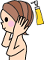 1.シャンプー、トリートメント後、タオルドライした毛髪に、十六油を適量手に取り、毛先(傷んでいる部分)を中心に、毛髪全体につけて下さい。